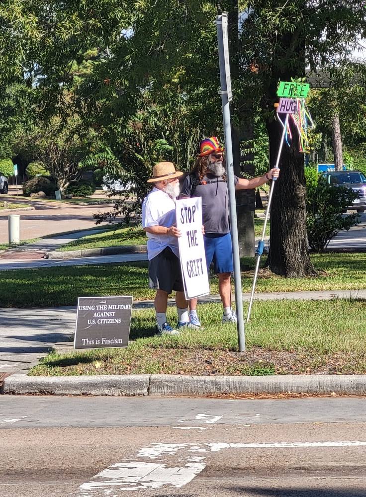 Eleven strong today! Lots of honks and waves, a few downers, and one old coot said “I don’t carry a gun because of people like you.” Jeff and I both said, “What did you say?” He repeated then drove off. Interpret that as you wish. We just shook our heads and got back to the important task at hand.