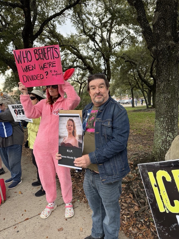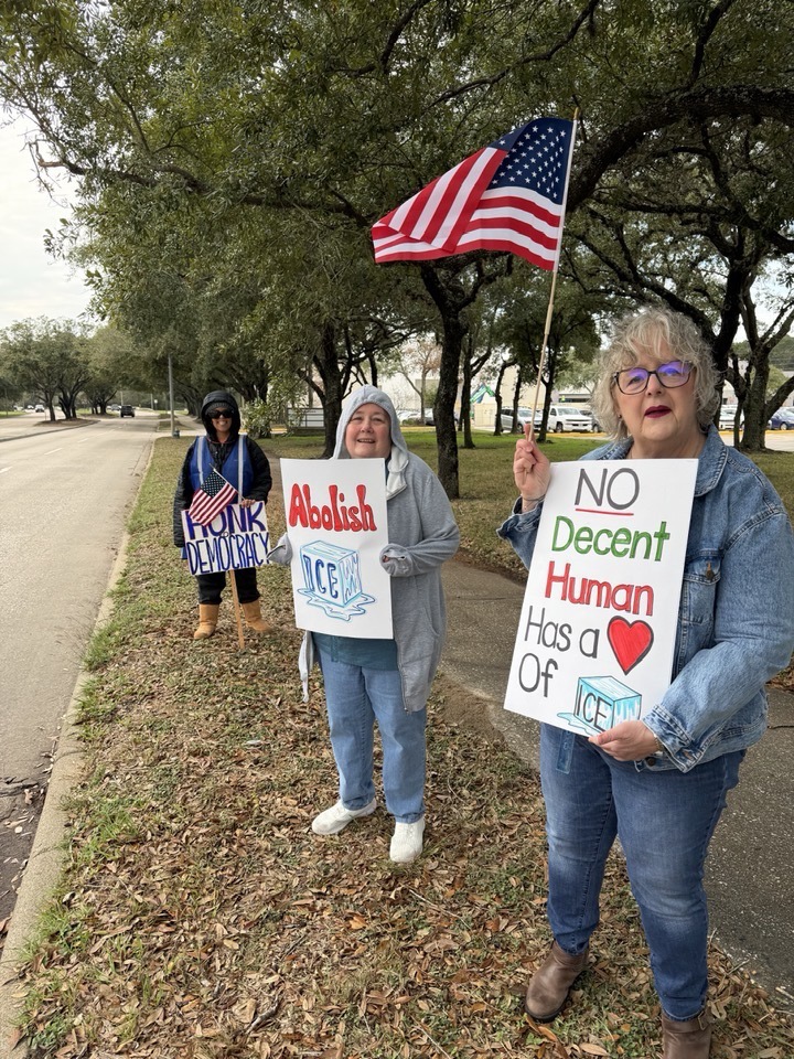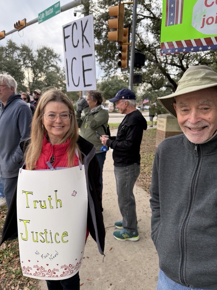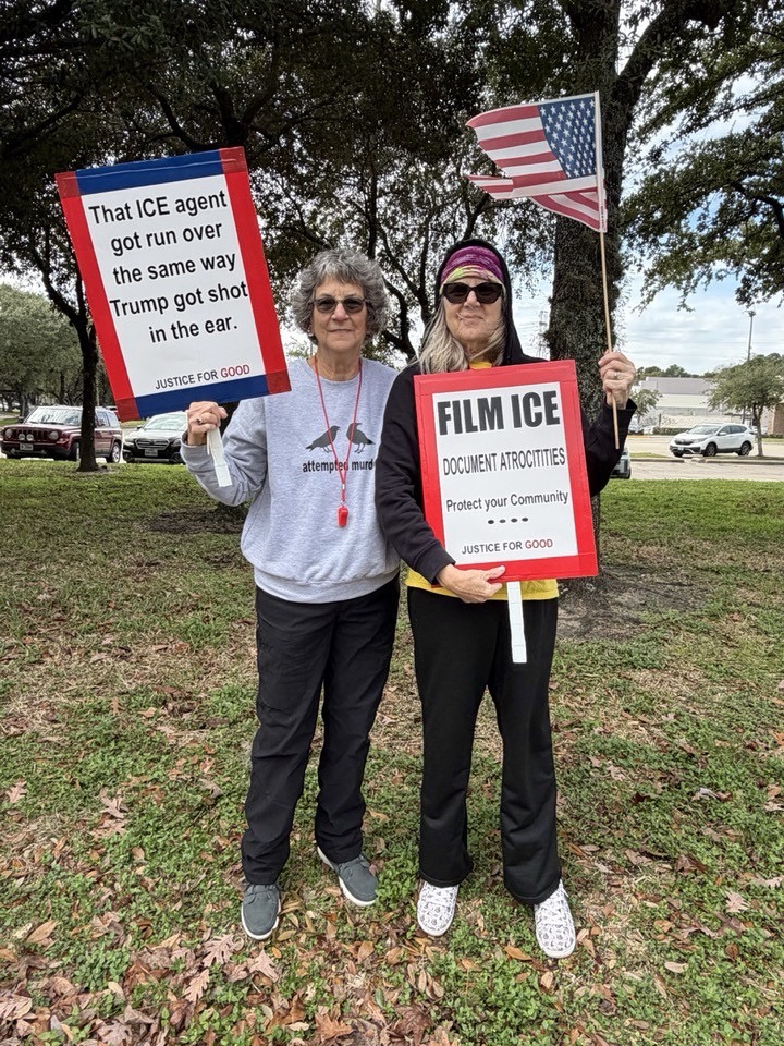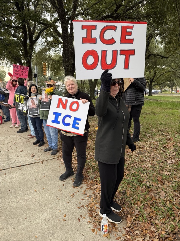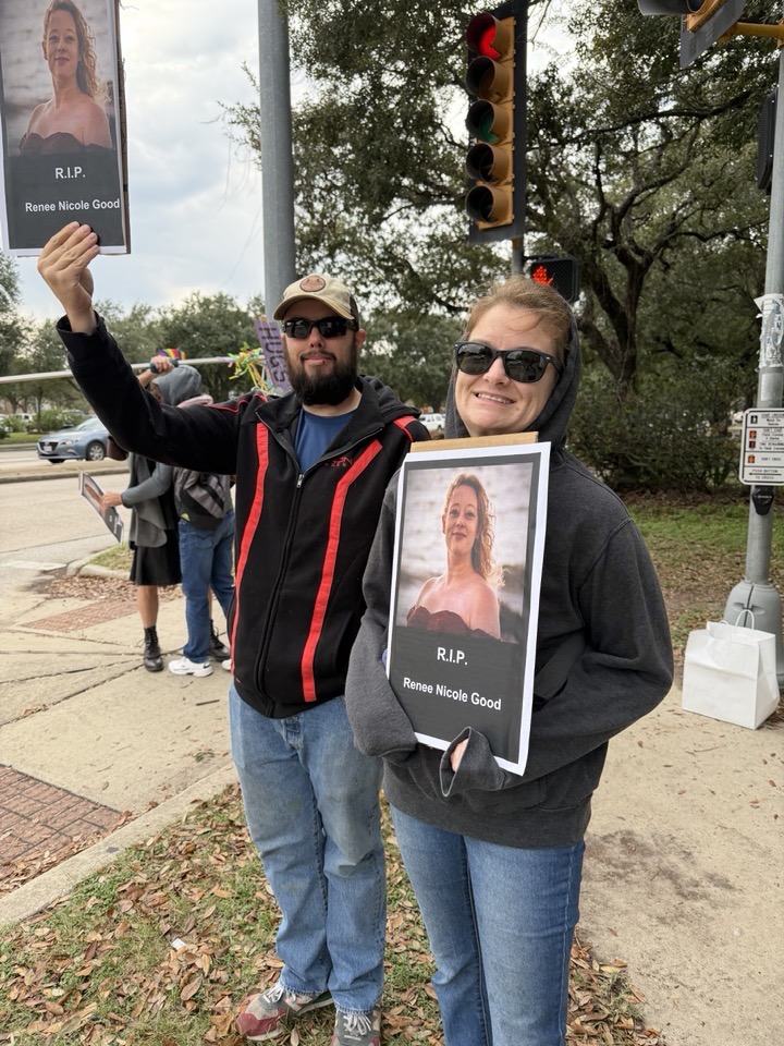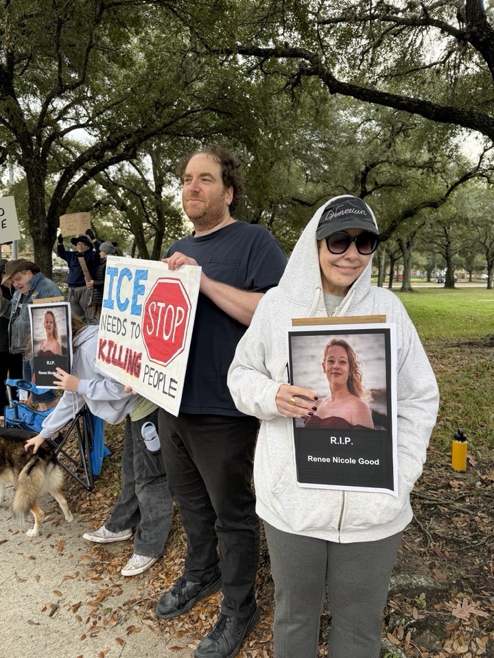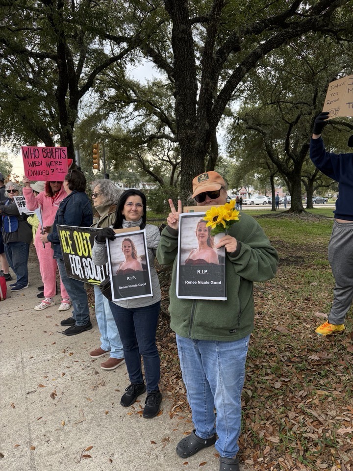 We are a small community near Houston, Texas. We believe Renee Good was murdered. Agent Ross was ready to shoot someone. We showed up over 130 strong to voice our outrage at this senseless killing.